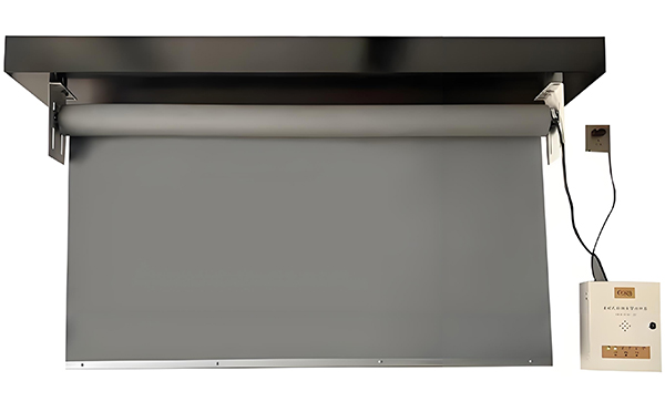 连接电源线和控制线,将布尔津挡烟垂壁安装在支架上,并用螺丝固定。
